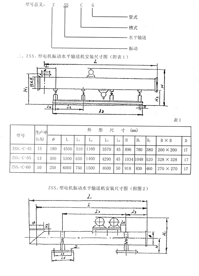 ZSS型電機(jī)振動水平輸送機(jī),見圖,結(jié)構(gòu)合理,安裝方便、耗能低??砂殡S干燥、冷卻、清洗,除去有害氣體等工藝過程。